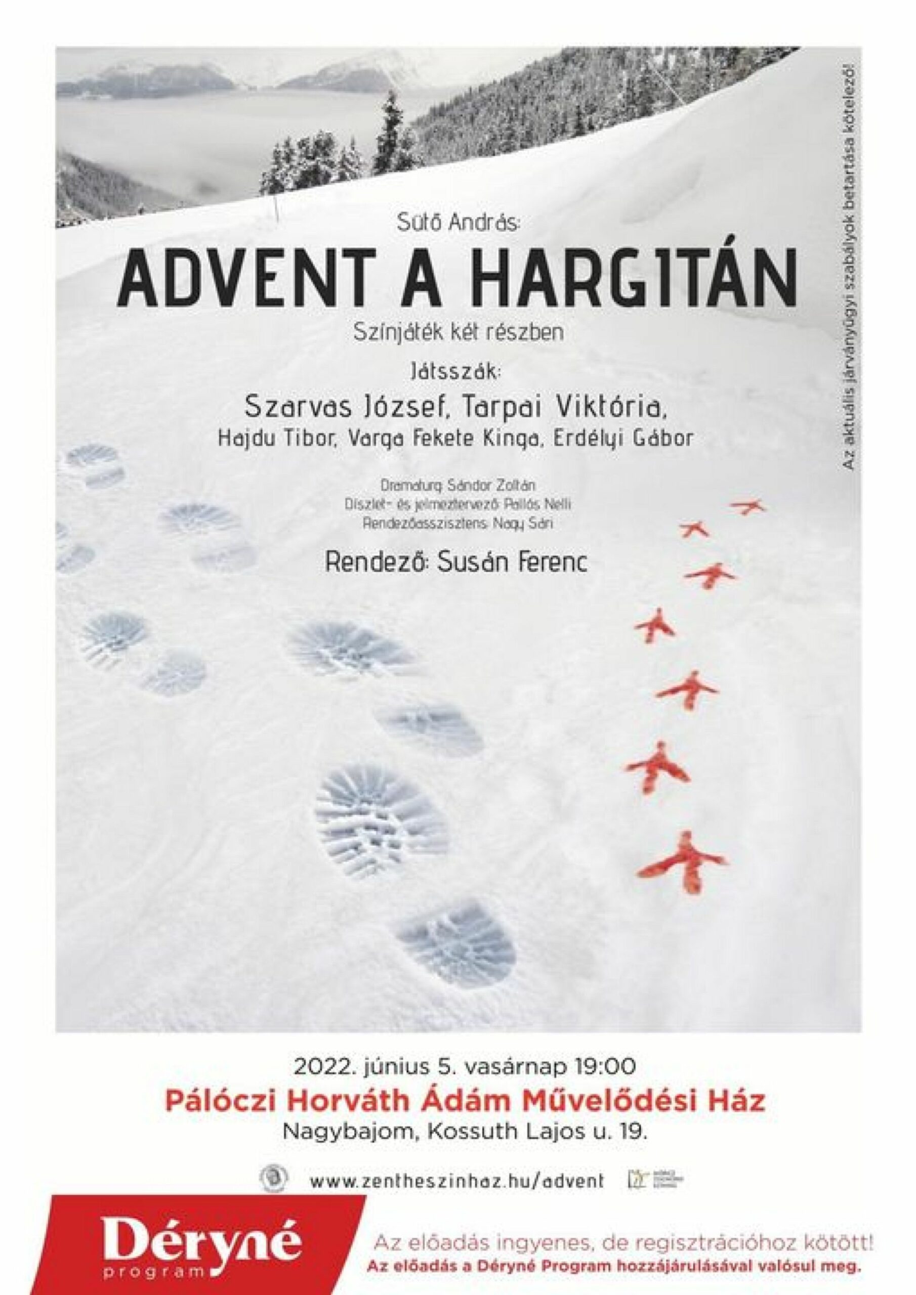 Szívet melengető előadással érkezik városunkba ismét a salgótarjáni Zenthe Ferenc Színház társulata. Június 5-én, vasárnap 19.00 órai kezdéssel az Advent a Hargitán című színjátékot láthatjuk a Pálóczi Horváth Ádám Művelődési Házban.