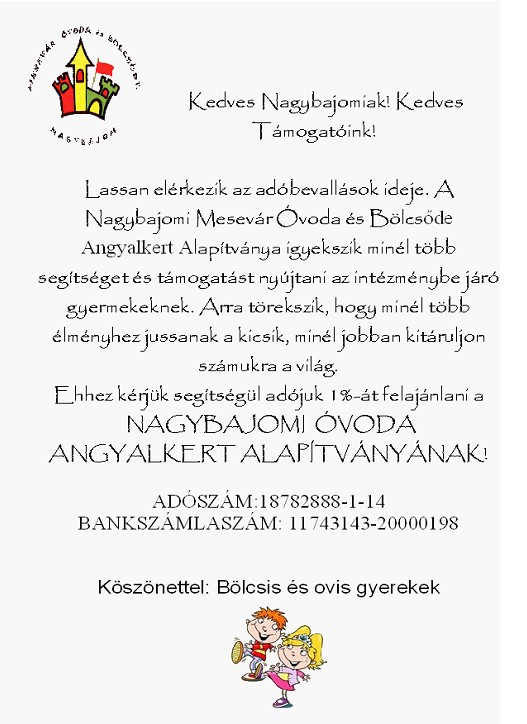 Az Angyalkert Alapítvány felhívása Szerző: Kiss Zoltán Dátum: 2015-01-29 Kategória: Nem kategorizált Előző Újabb röplabdás érmek Baján és Ajkán Következő OVI farsang Vélemény, hozzászólás? Válasz megszakításaAz e-mail címet nem tesszük közzé. A kötelező mezőket * karakterrel jelöltükHozzászólás * Név * E-mail cím * Honlap A nevem, e-mail címem, és weboldalcímem mentése a böngészőben a következő hozzászólásomhoz.