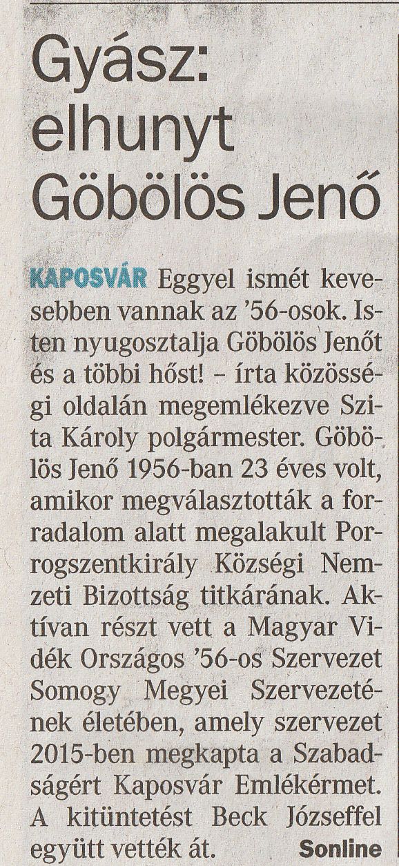 Valamikor, a budapesti események híre eljutott Szentkirályra (a pontos dátumra nem emlékszem) a falu népe is megmozdult. A családot én képviseltem. Későbbi szerencsénkre apám ekkor ágyban fekvő beteg volt.