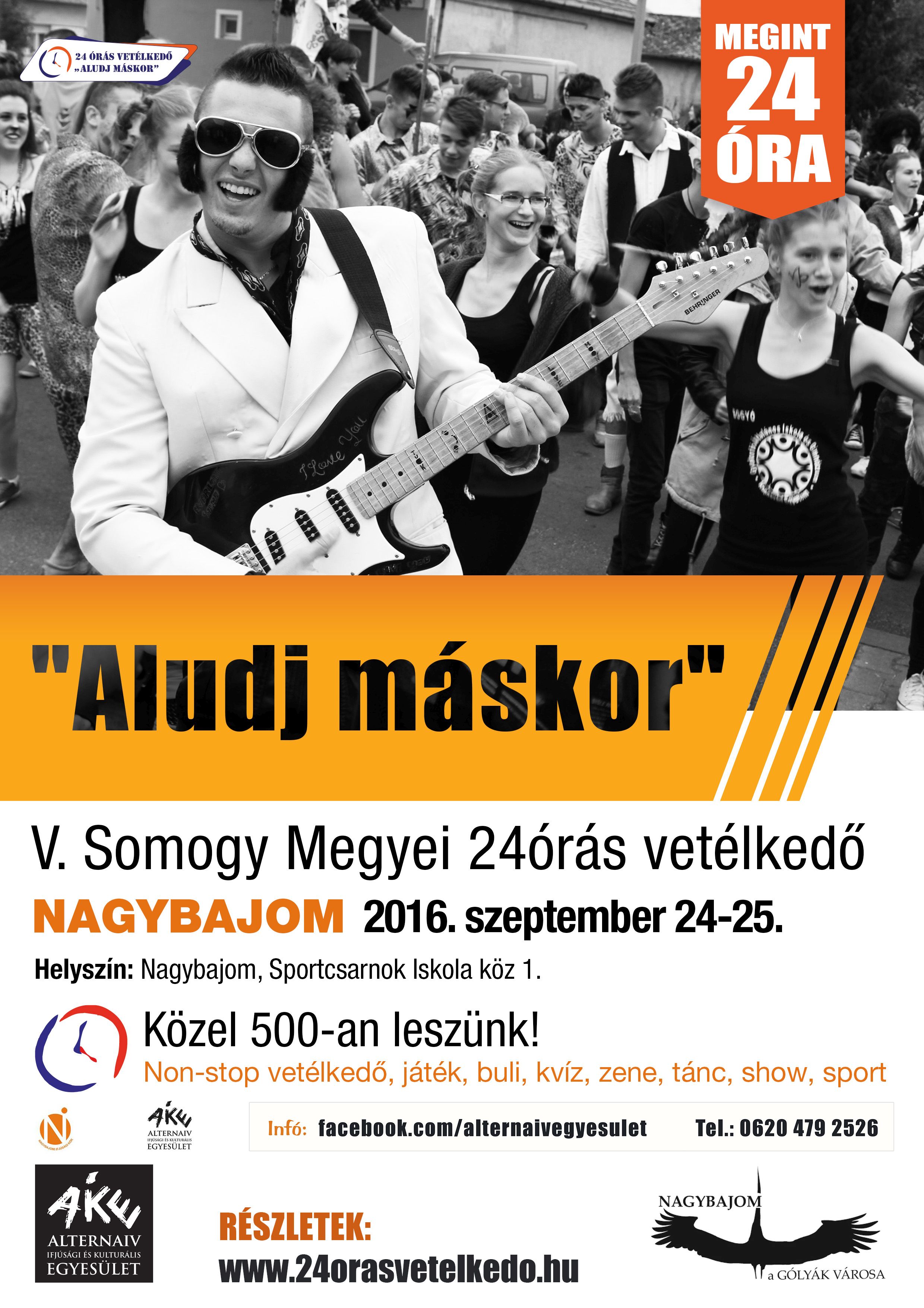 Somogy megyei zenekarok, formációk, egyéni produkciók számára biztosítunk bemutatkozási lehetőséget az „Aludj máskor, Somogy megye!” elnevezésű, ötödik alkalommal megrendezésre kerülő 24 órás középiskolai vetélkedőn – a megye egyik legnagyobb ifjúsági rendezvényén.