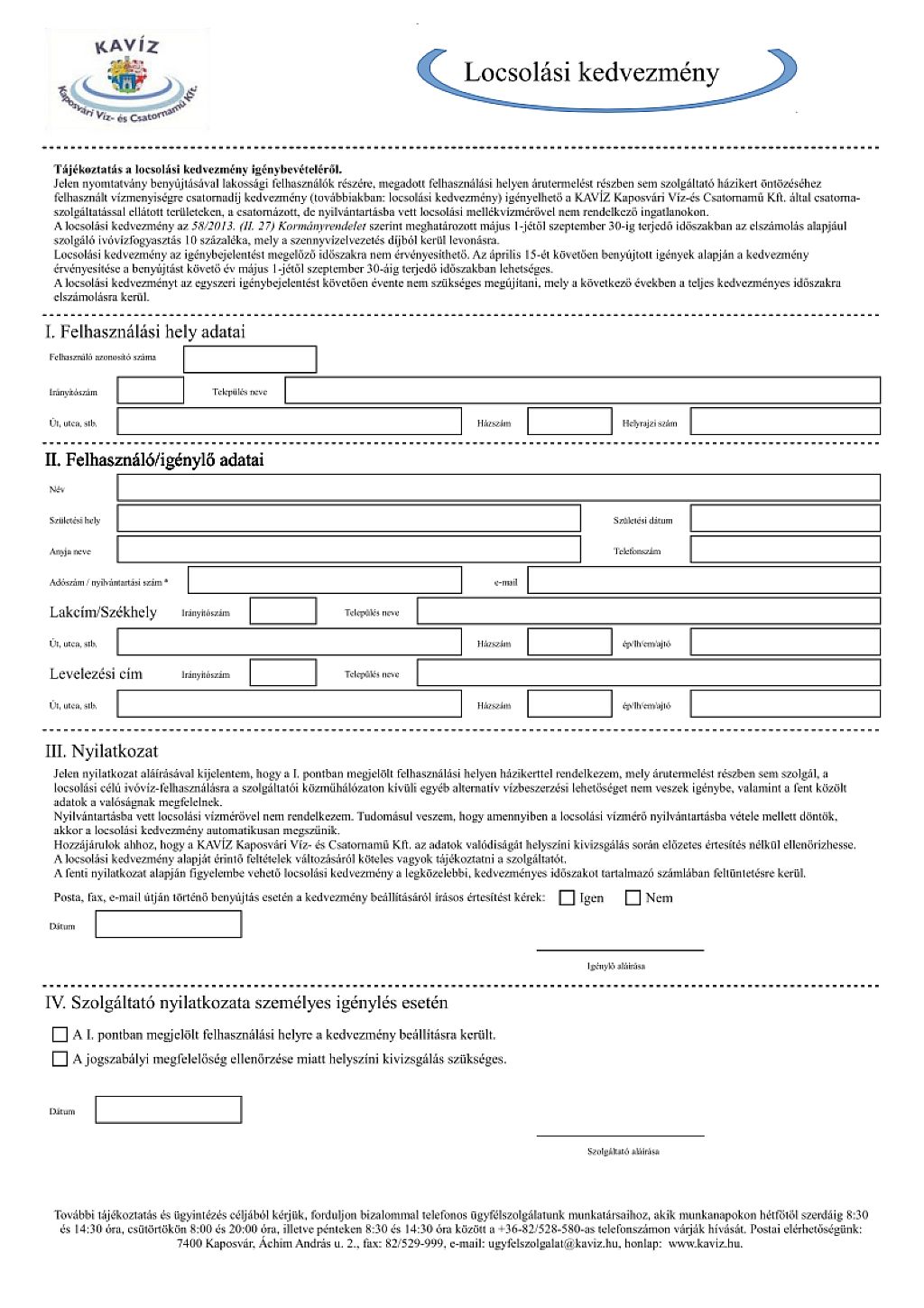 Locsolási kedvezmény: azon családi házas környékeken, ahol az ingatlan csatornázott (és az egyéb feltételeket is teljesíti a Fogyasztó) a nyújtott CSATORNASZOLGÁLTATÁS díjából 10% kedvezményben részesül minden év május 1. és augusztus 31. közötti időszakban.