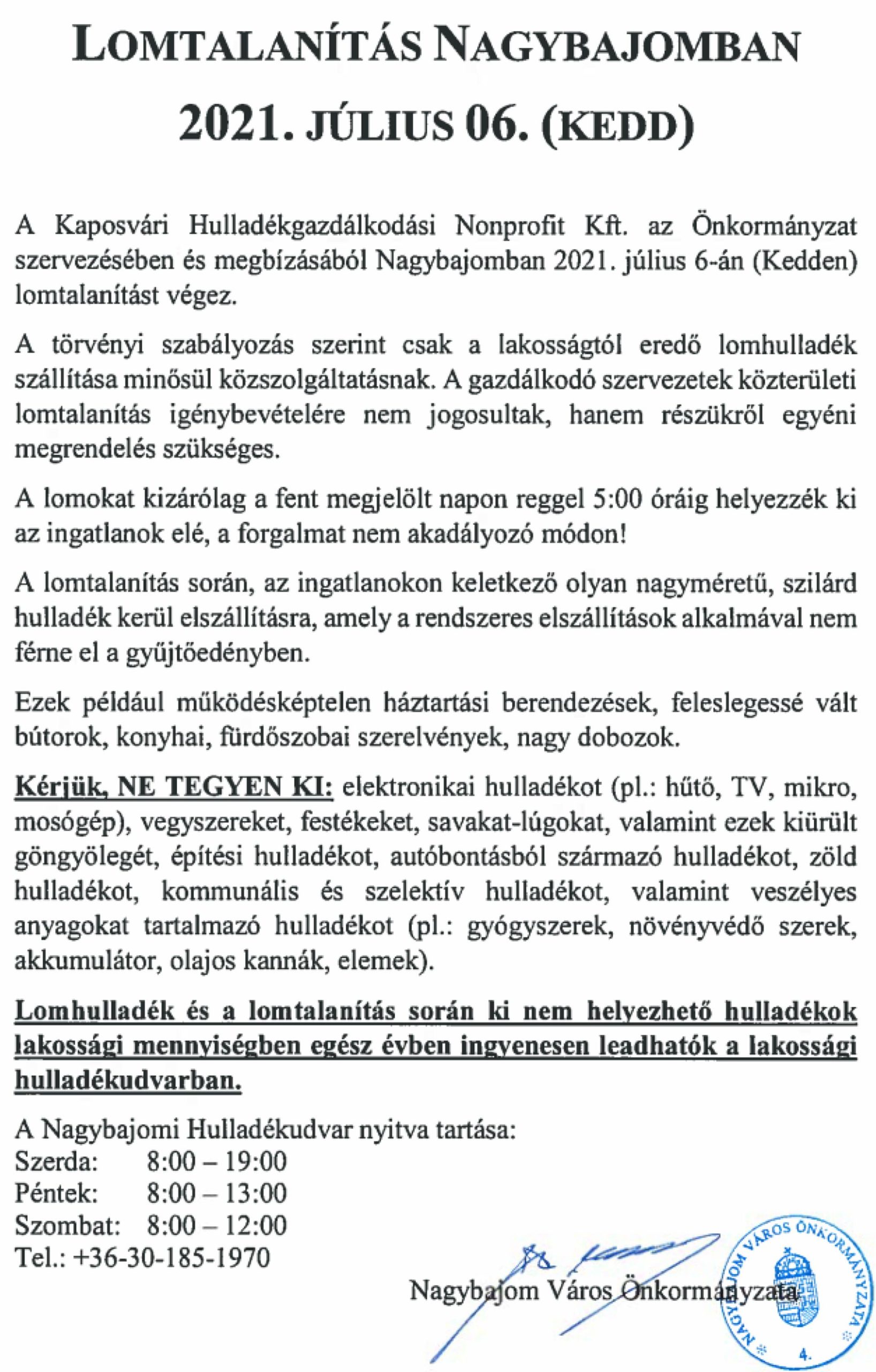 LOMTALANÍTÁS Szerző: Kiss Zoltán Dátum: 2021-06-23 Kategória: Hirdetés NAPTÁRprogram Előző Roma nap 2021. 07. 10, – Nagybajom Következő Megújult a NagybajomFigyelő! Vélemény, hozzászólás? Válasz megszakításaAz e-mail címet nem tesszük közzé. A kötelező mezőket * karakterrel jelöltükHozzászólás * Név * E-mail cím * Honlap A nevem, e-mail címem, és weboldalcímem mentése a böngészőben a következő hozzászólásomhoz.
