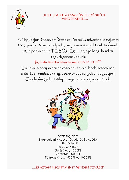 Májusfa kitáncolás – ÓVODA Szerző: Kiss Zoltán Dátum: 2015-05-12 Kategória: Nem kategorizált Előző II. Szántó hús műfüves labdarúgás – 1. és 2. forduló Következő II. Szántó hús műfüves labdarúgás – 3. forduló Vélemény, hozzászólás? Válasz megszakításaAz e-mail címet nem tesszük közzé. A kötelező mezőket * karakterrel jelöltükHozzászólás * Név * E-mail cím * Honlap A nevem, e-mail címem, és weboldalcímem mentése a böngészőben a következő hozzászólásomhoz.