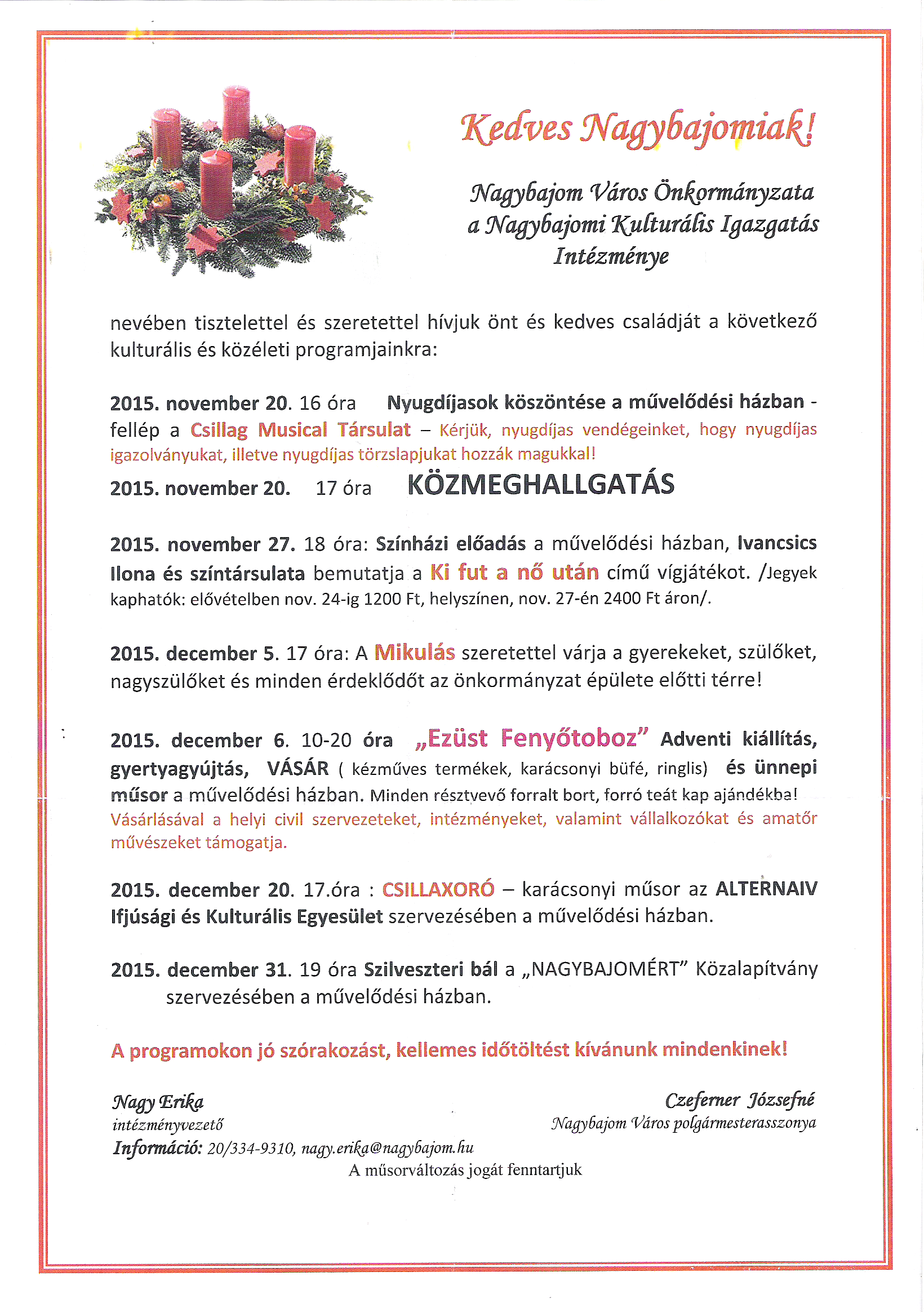 A NAPTÁR a hónap folyamán frissülhet! Frissítve: 2015.11.17. 10:17