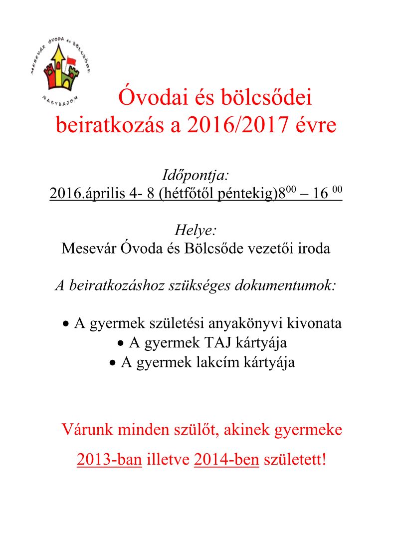 Bölcsődei és óvodai beíratás