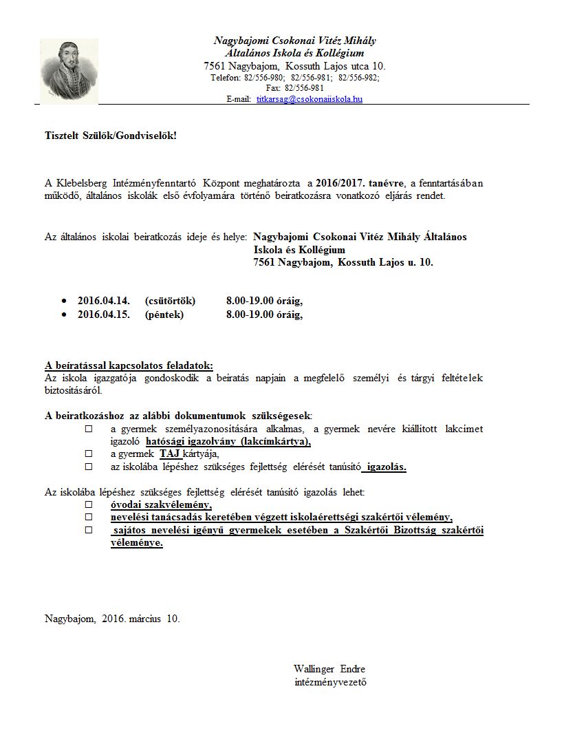 Általános iskolai beíratás