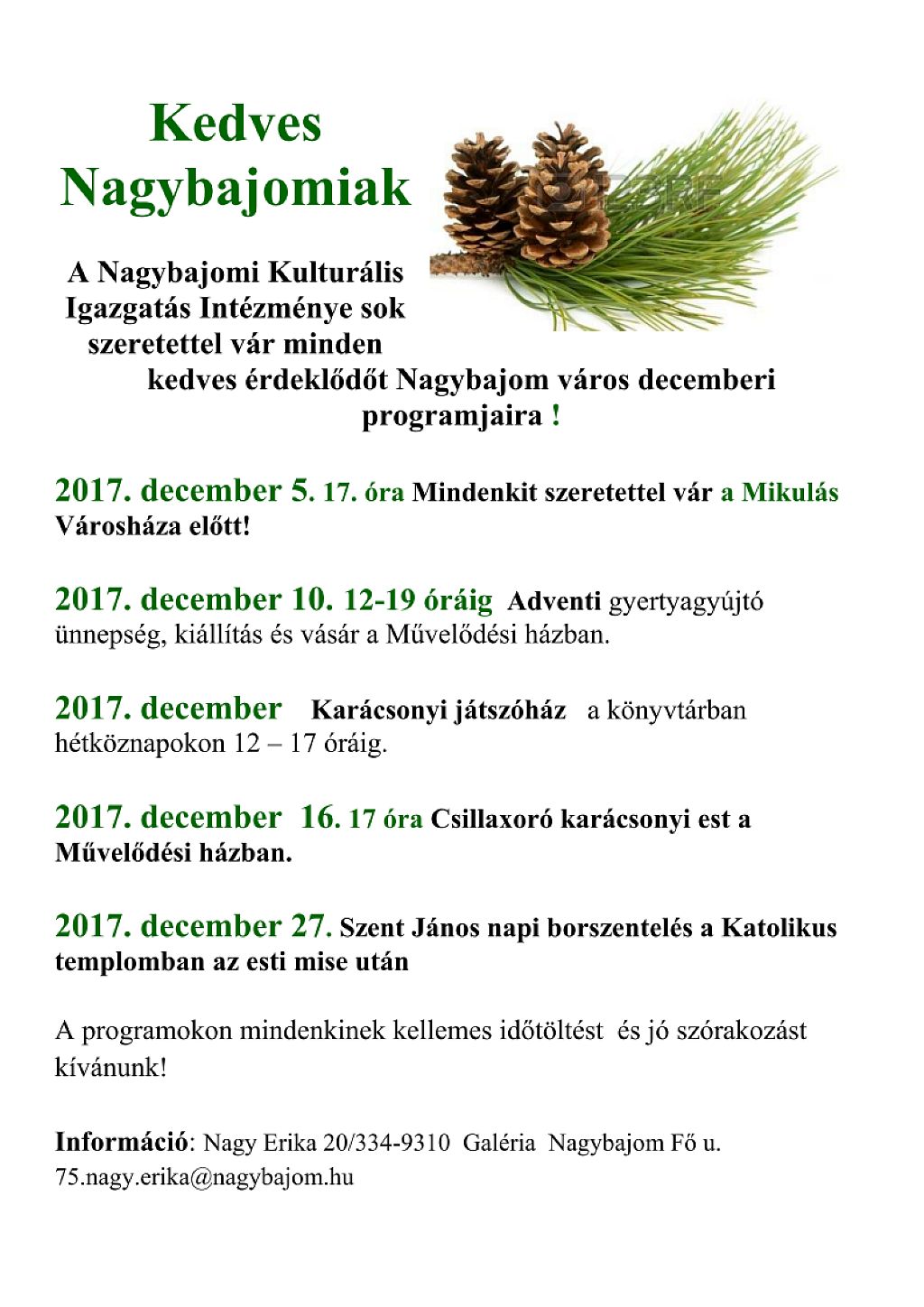 NAPTÁR – 2017. december Szerző: Kiss Zoltán Dátum: 2017-12-05 Kategória: Nem kategorizált HírekNAPTÁRprogram Előző MEGHÍVÓ Következő ADVENTI MEGHÍVÓ Vélemény, hozzászólás? Válasz megszakításaAz e-mail címet nem tesszük közzé. A kötelező mezőket * karakterrel jelöltükHozzászólás * Név * E-mail cím * Honlap A nevem, e-mail címem, és weboldalcímem mentése a böngészőben a következő hozzászólásomhoz.