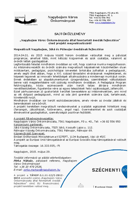 Óvodák fejlesztése – sajtóközlemény Szerző: Kiss Zoltán Dátum: 2015-05-29 Kategória: Nem kategorizált Hírek Előző Horgászhírek Következő CREDO – 2015. május Vélemény, hozzászólás? Válasz megszakításaAz e-mail címet nem tesszük közzé. A kötelező mezőket * karakterrel jelöltükHozzászólás * Név * E-mail cím * Honlap A nevem, e-mail címem, és weboldalcímem mentése a böngészőben a következő hozzászólásomhoz.