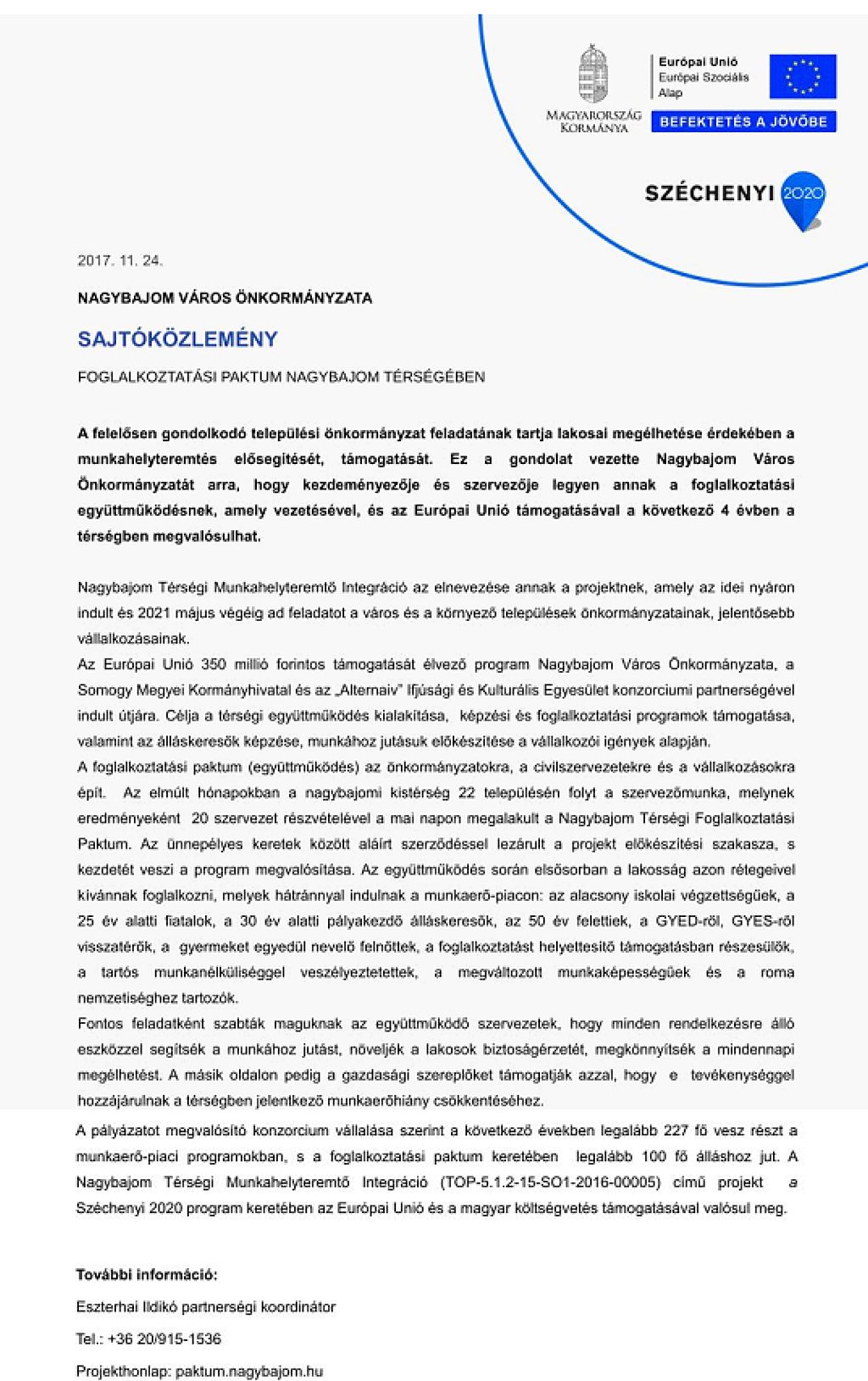 Sajtóközlemény – foglalkoztatási paktum Szerző: Kiss Zoltán Dátum: 2017-11-25 Kategória: Nem kategorizált Kapcsolódó hírek>>> Hírek Előző Kalocsán röplabdáztunk Következő Röplabdás arany Pécsről Vélemény, hozzászólás? Válasz megszakításaAz e-mail címet nem tesszük közzé. A kötelező mezőket * karakterrel jelöltükHozzászólás * Név * E-mail cím * Honlap A nevem, e-mail címem, és weboldalcímem mentése a böngészőben a következő hozzászólásomhoz.
