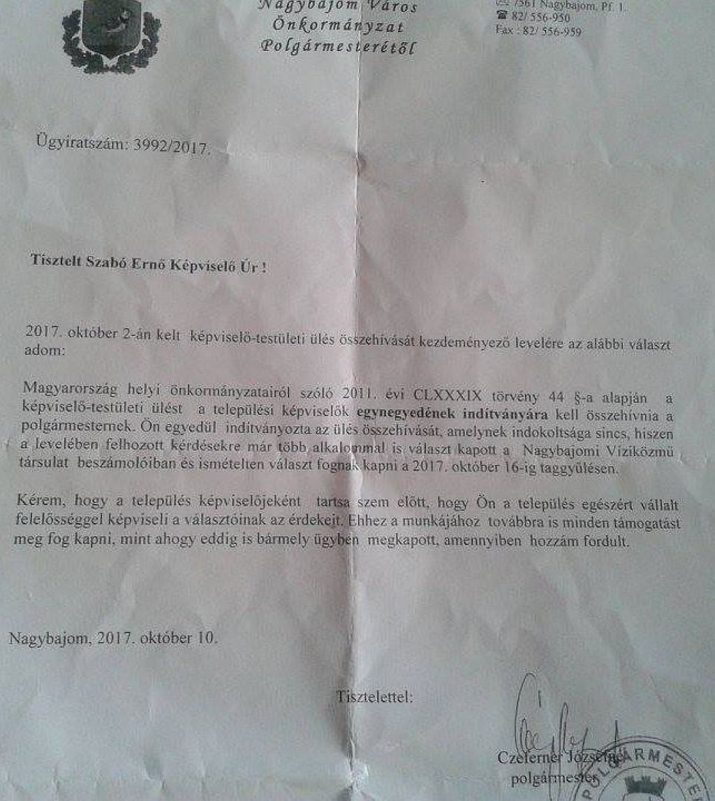 2017. november 10. Válasz a képviselői előterjesztésre