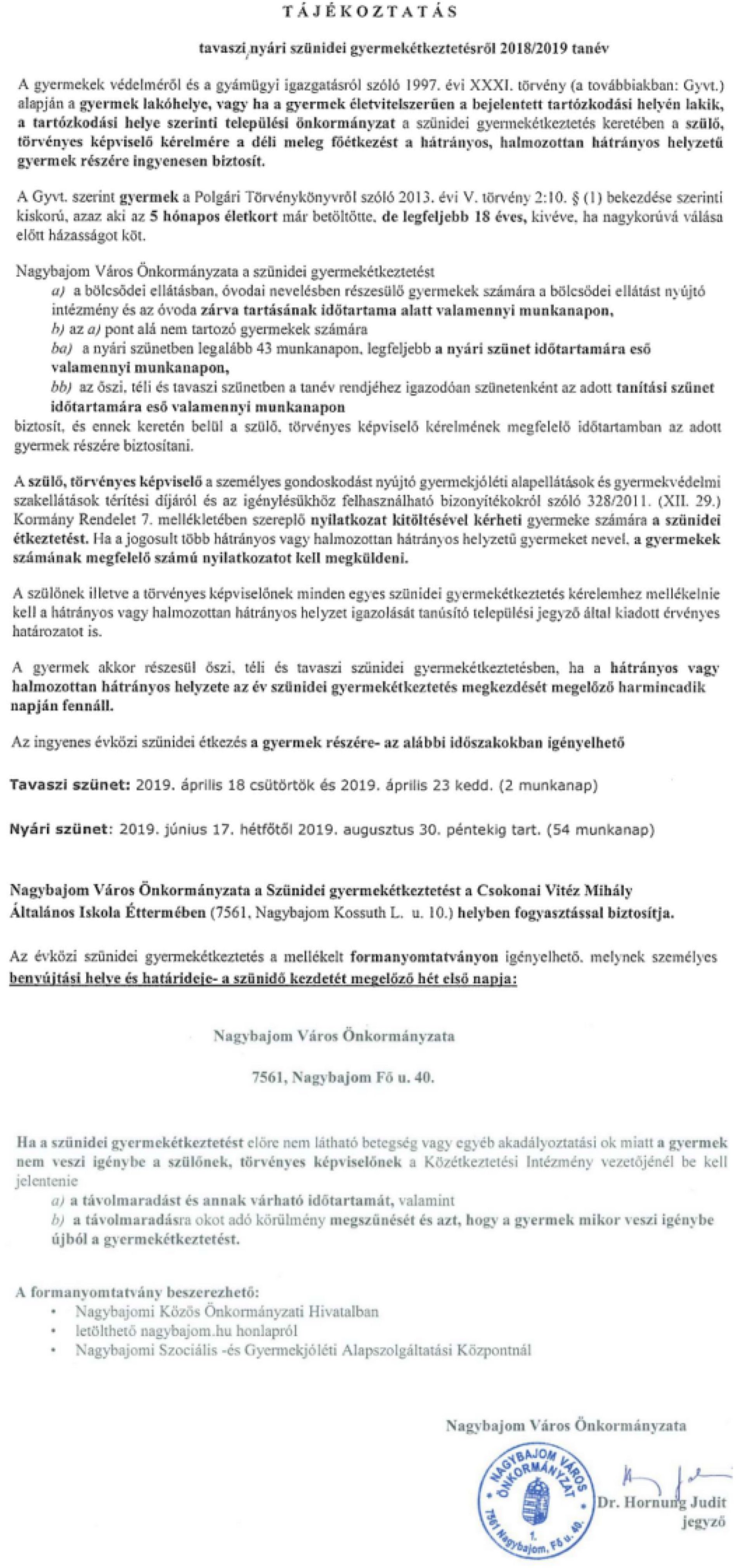LETÖLTHETŐ SZÜNIDEI ÉTKEZÉSI FORMANYOMTATVÁNY<<<