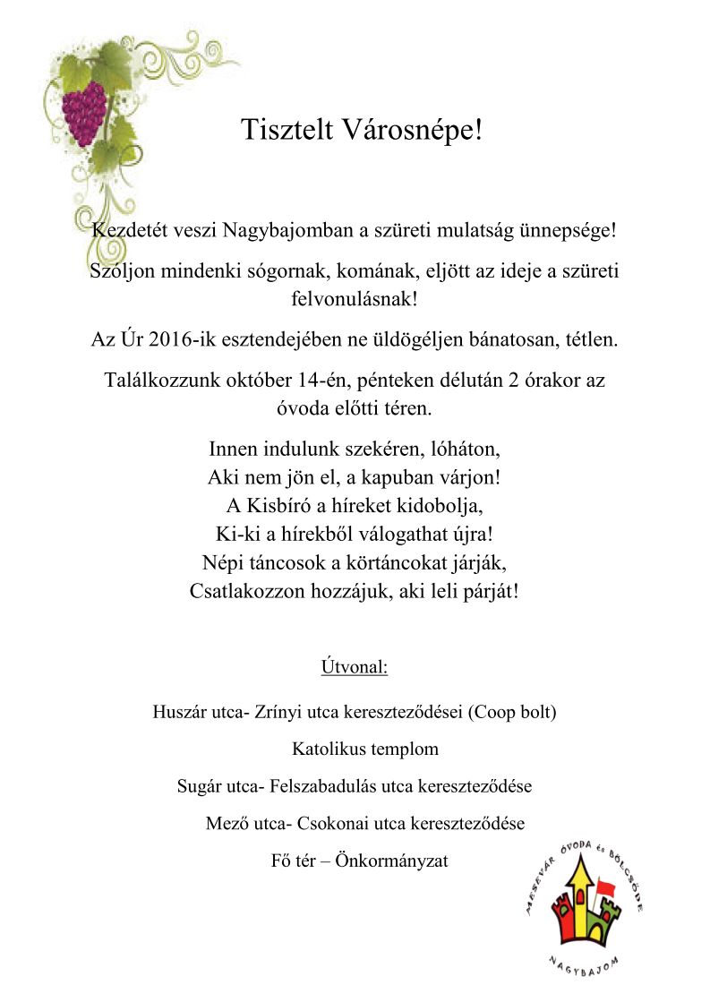 Szüreti felvonulás – Nagybajom Szerző: Kiss Zoltán Dátum: 2016-10-05 Kategória: Nem kategorizált Hírekprogram Előző NÉPSZAVAZÁS – nagybajomi eredmények Következő MEGHÍVÓ Vélemény, hozzászólás? Válasz megszakításaAz e-mail címet nem tesszük közzé. A kötelező mezőket * karakterrel jelöltükHozzászólás * Név * E-mail cím * Honlap A nevem, e-mail címem, és weboldalcímem mentése a böngészőben a következő hozzászólásomhoz.