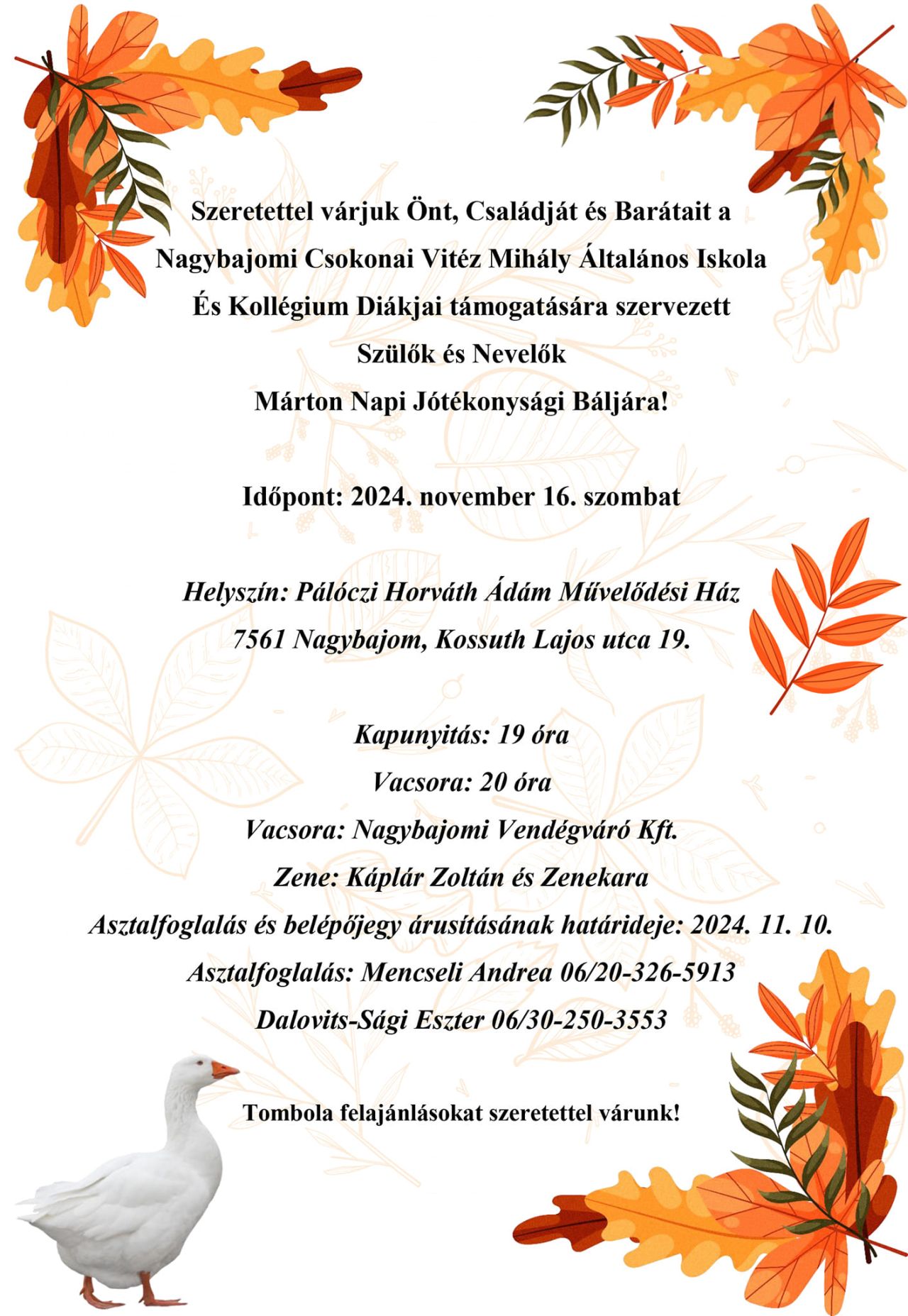 Szülők és Nevelők Márton Napi Jótékonysági Báljára!