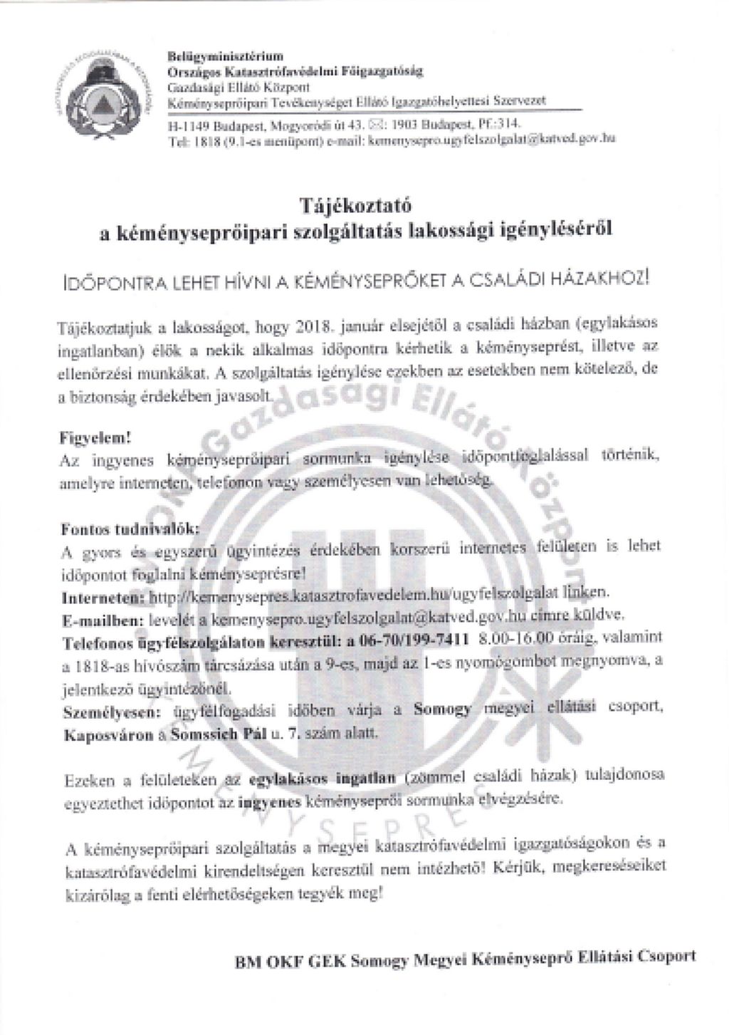 TÁJÉKOZTATÓ – kéményseprés Szerző: Kiss Zoltán Dátum: 2018-03-07 Kategória: Nem kategorizált WEBLAP: http://kemenysepres.katasztrofavedelem.hu/ugyfelszolgalat E-mail: kemenysepro.ugyfelszolgalat@katved.gov.hu Hírek Előző Szegeden jártak a röplabdások! Következő MEGHÍVÓ – Nemzeti Ünnep Vélemény, hozzászólás? Válasz megszakításaAz e-mail címet nem tesszük közzé. A kötelező mezőket * karakterrel jelöltükHozzászólás * Név * E-mail cím * Honlap A nevem, e-mail címem, és weboldalcímem mentése a böngészőben a következő hozzászólásomhoz.