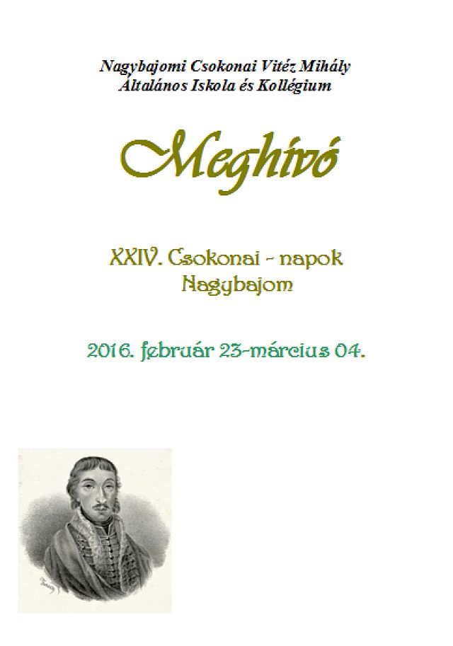 XXIV. Csokonai – napok Szerző: Kiss Zoltán Dátum: 2016-02-20 Kategória: Nem kategorizált NAGYBAJOMfigyelő: 2016. február 20. BŐVEBBEN: KLIKK A KÉPRE>>> MEGHÍVÓ>>> Előző Csarnok kupa labdarúgó bajnokság 2015 -2016 – 11. forduló Nagybajom Következő Köszönet Vélemény, hozzászólás? Válasz megszakításaAz e-mail címet nem tesszük közzé. A kötelező mezőket * karakterrel jelöltükHozzászólás * Név * E-mail cím * Honlap A nevem, e-mail címem, és weboldalcímem mentése a böngészőben a következő hozzászólásomhoz.